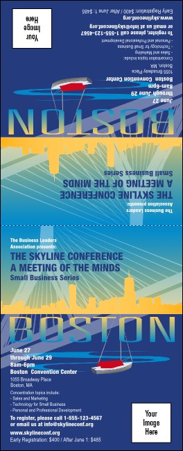 Bunker Hill Bridge and a bright skyline catch eyes from within the Boston Table Tent, ensuring your event’s information gets seen! Finished off with your organization’s logo and a sailboat floating in the harbor, this table talker is perfect for promoting your event in one of New England’s most charming cities. Pair it with invitations, event tickets, and more from its matching event kit!